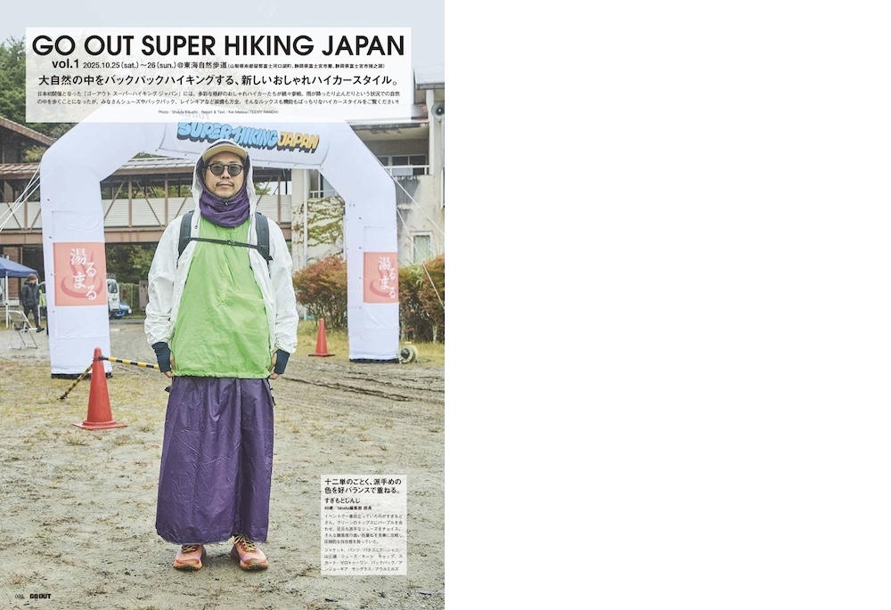 さらに、ヌクくておしゃれな防寒アイテムや、おしゃれなお掃除&片付けアイテムに加え、10月末に開催された「GO OUT SUPER HIKING JAPAN vol.1」の会場でスナップした、おしゃれハイカースタイルなど、今月も内容たっぷりでお届けいたします!